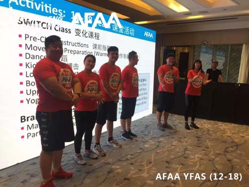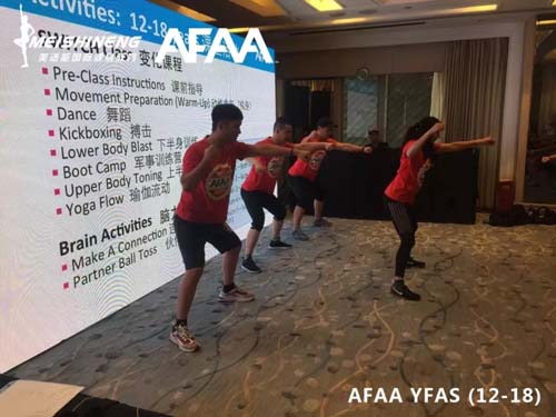 作为顶级权威国际体适能机构,AFAA 应邀出席IDEA大会,国际导师团队在美国大师级导师Lisa J Hamlin带领下为大会提供4节高水平课程。中国导师团队包括闫小虎老师,刘辉老师,王宇老师,周坚老师,崔婷歌老师。