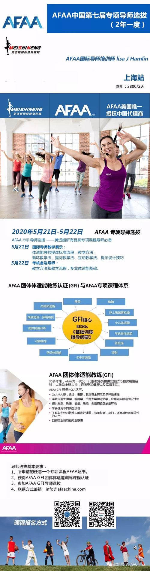 秉承AFAA美国教育理念,为中国健身业界提供高品质健身国际品牌教育。
