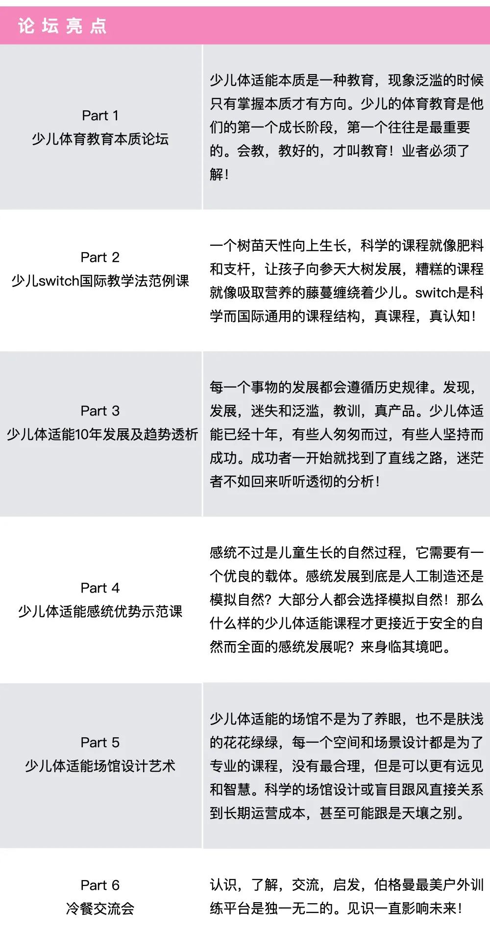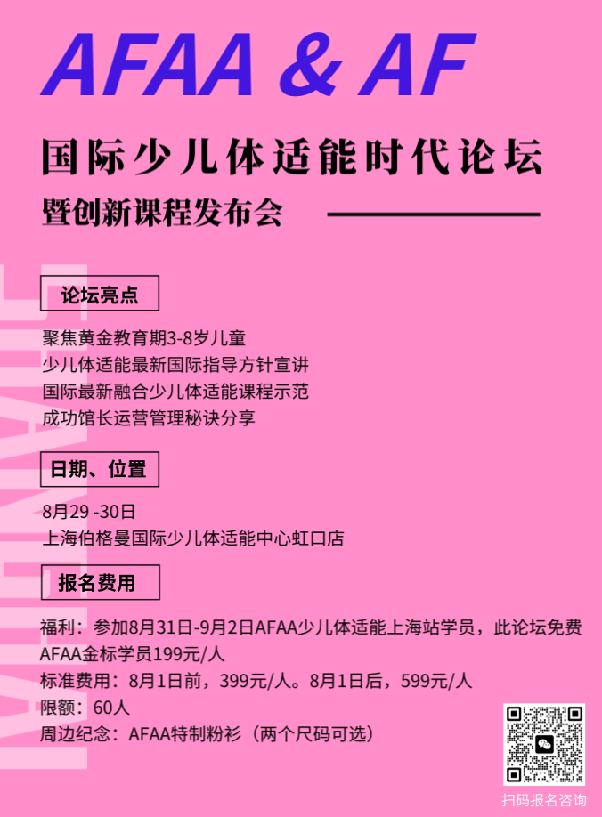 少儿体适能,在国内是一个作为概念和口号喊了近10年的名词。任何事物经过轰轰烈烈,一拥而上后,留下的都是真实产品的坚持者!恒盛娱乐AFAA ,作为2012年开始把国际少儿体适能引入国内的国际体适能协会,一直教授科学的、以少儿为中心的体适能全课程体系。经过十多年课程培训及经验总结,恒盛娱乐AFAA 将为从业者举办一个高水准创意论坛,希望唤起初心,精进专业,以长久事业为目标。
