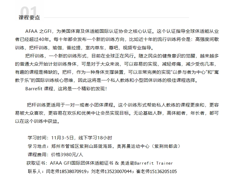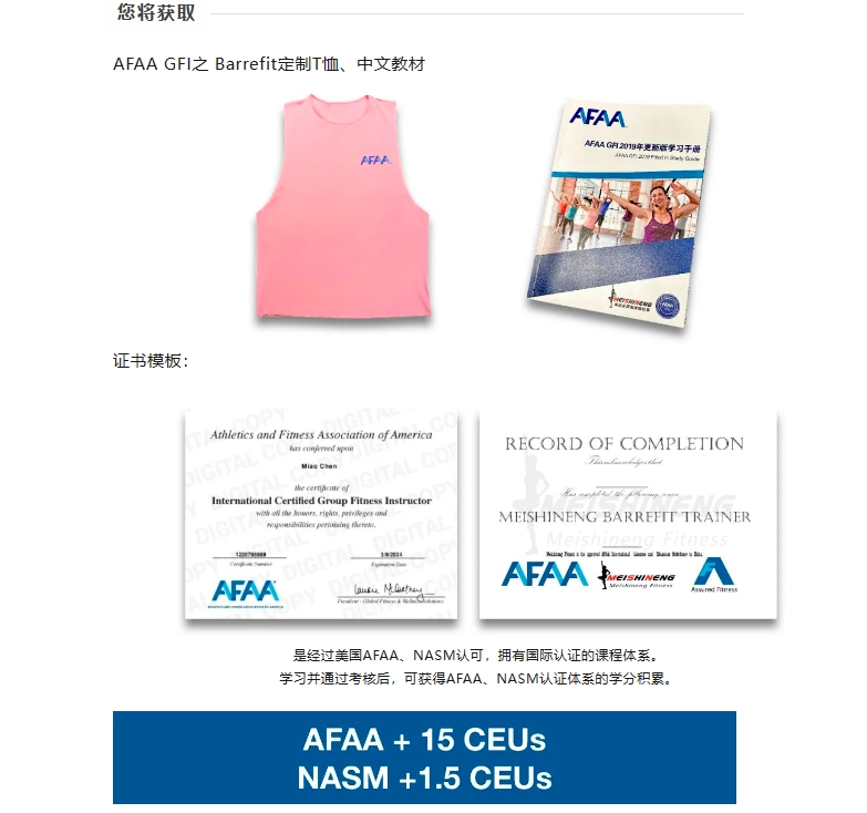 恒盛娱乐AFAA GFI之 Barrefit把杆教练国际认证