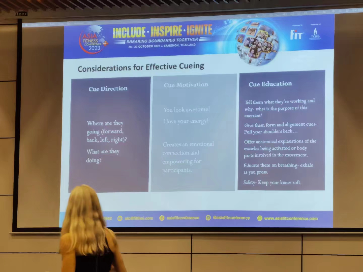 启发:教练(团体和私教)的基本功和核心工作,是指导会员做规范的动作,教练的口令提示是核心素养,且教练不是“数数的”,要激励,要幽默!让会员感觉到归属且没有评判!团体授课技能,才是教练的“法宝”!需要不断精进!!!!
