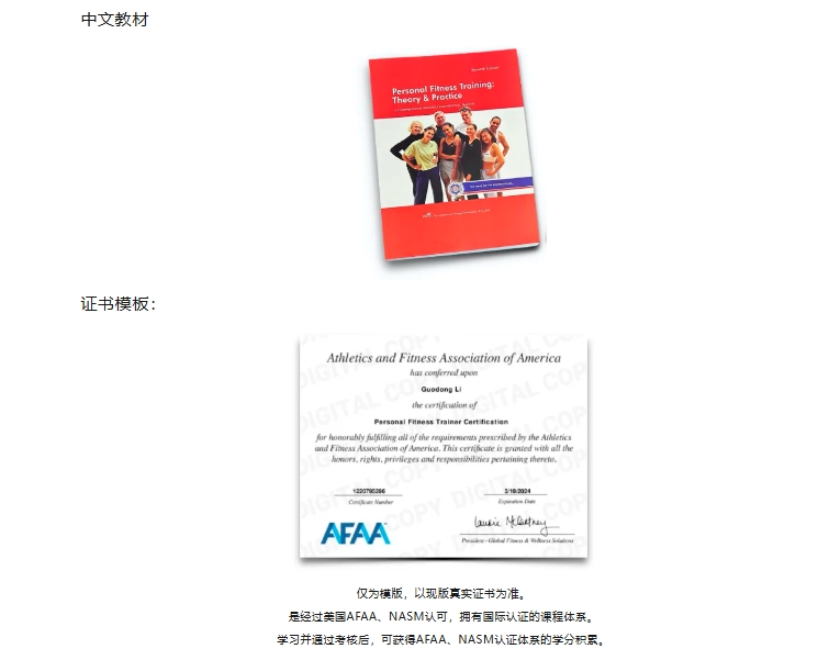 获取证书:AFAA PFT 国际私人教练证书