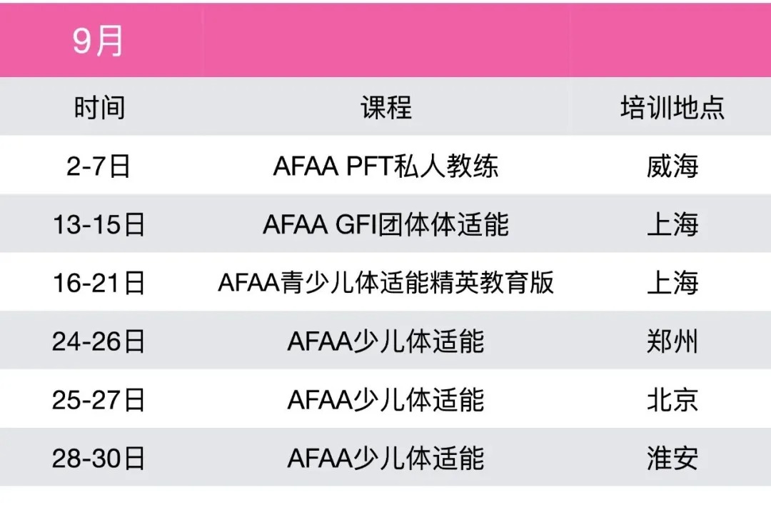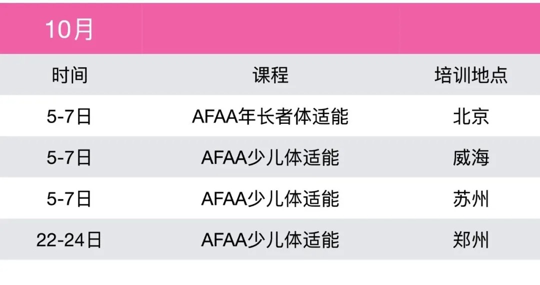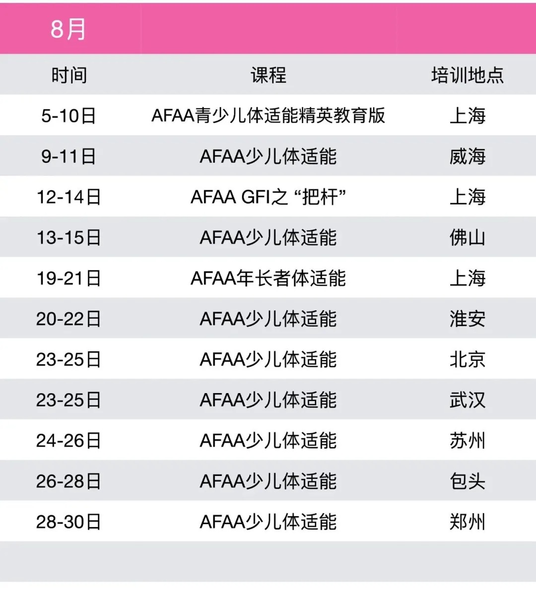 AFAA恒盛娱乐2024年8-10月课程安排——更新中