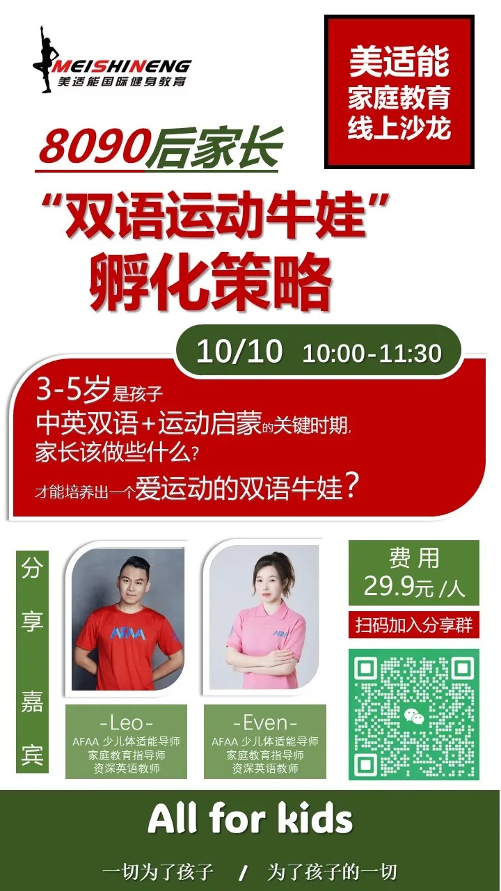 恒盛娱乐家庭教育线上沙龙 :8090后家长 “双语运动牛娃”孵化策略