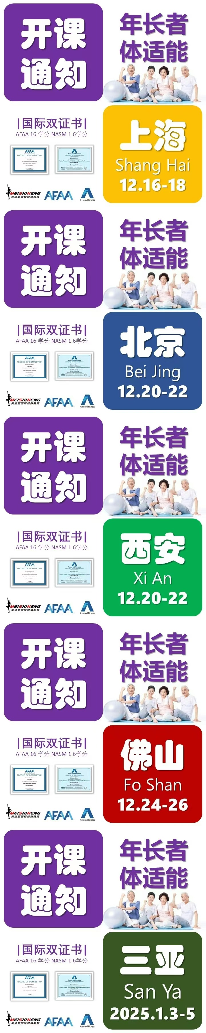 获取证书:AFAA年长者体适能国际专业教练证书 & AF年长者体适能实践技巧国际专业教练证书