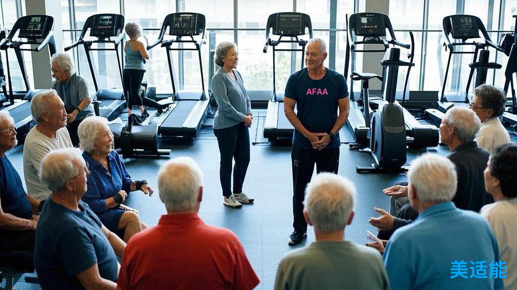 AFAA课程中的《老年人常见疾病运动指导方针》为教练提供了专业指引。面对高血压患者,教练需避免让其憋气、进行大重量抗阻训练;针对骨质疏松者,侧重轴向承重训练,如靠墙静蹲;对于糖尿病患者,严格监测训练前后血糖,避开低血糖时段运动。