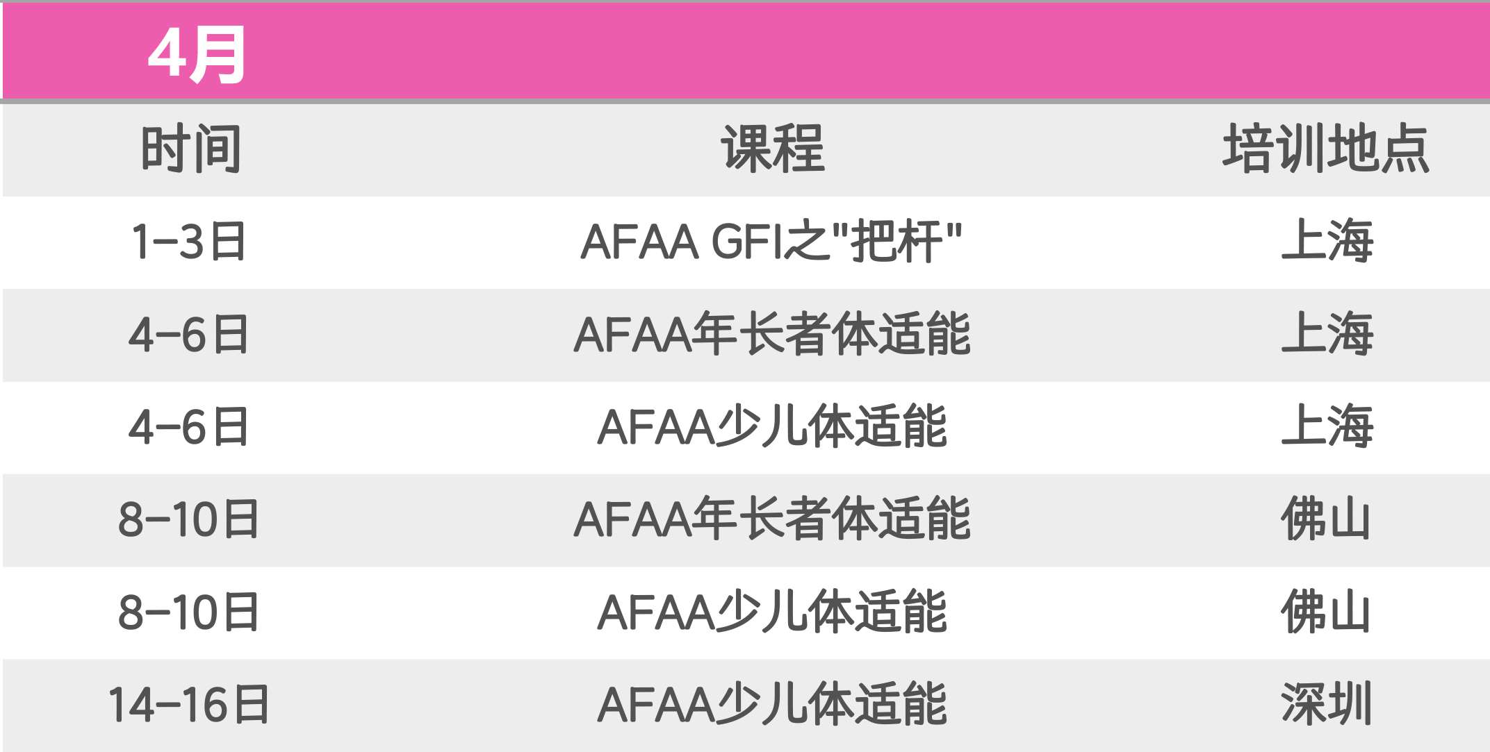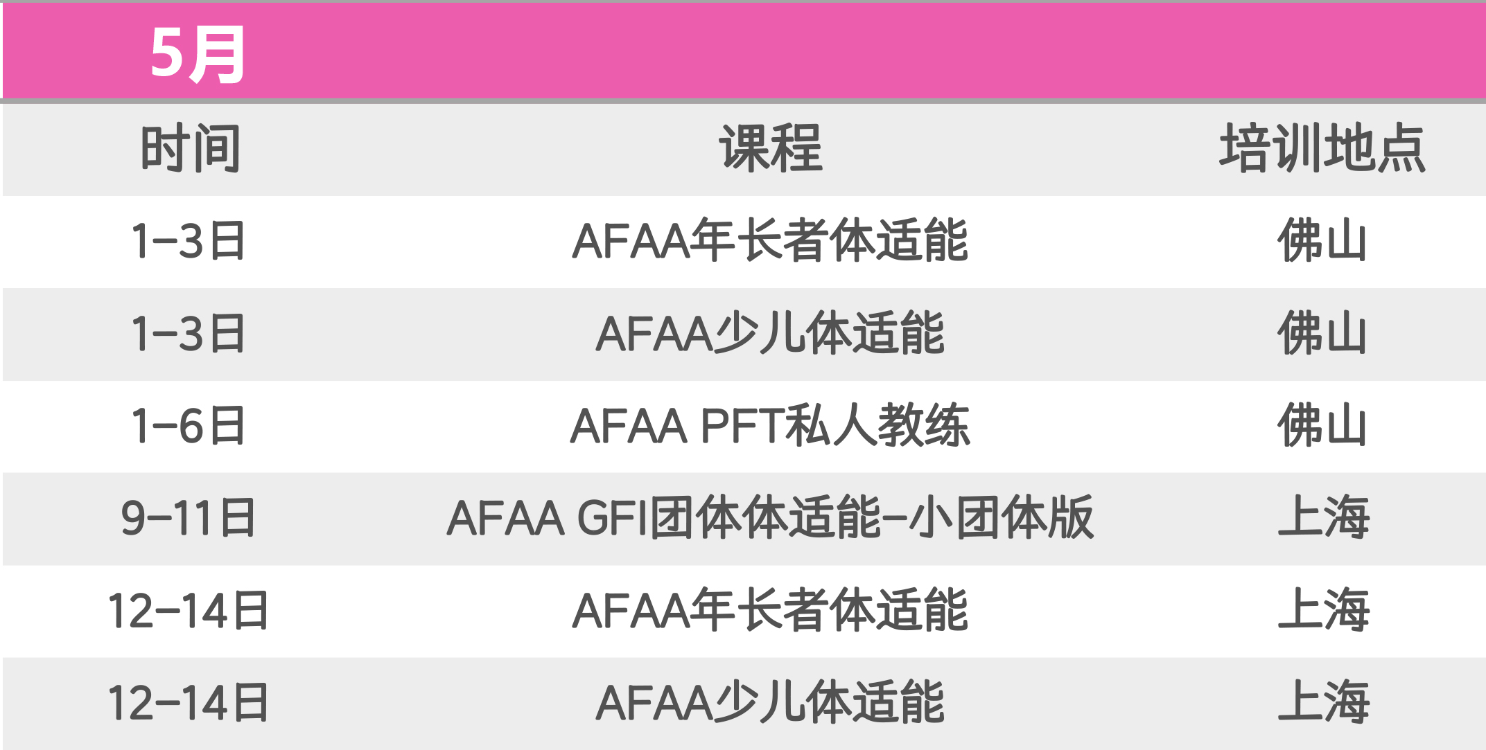 AFAA恒盛娱乐2025年3月-5月课程安排