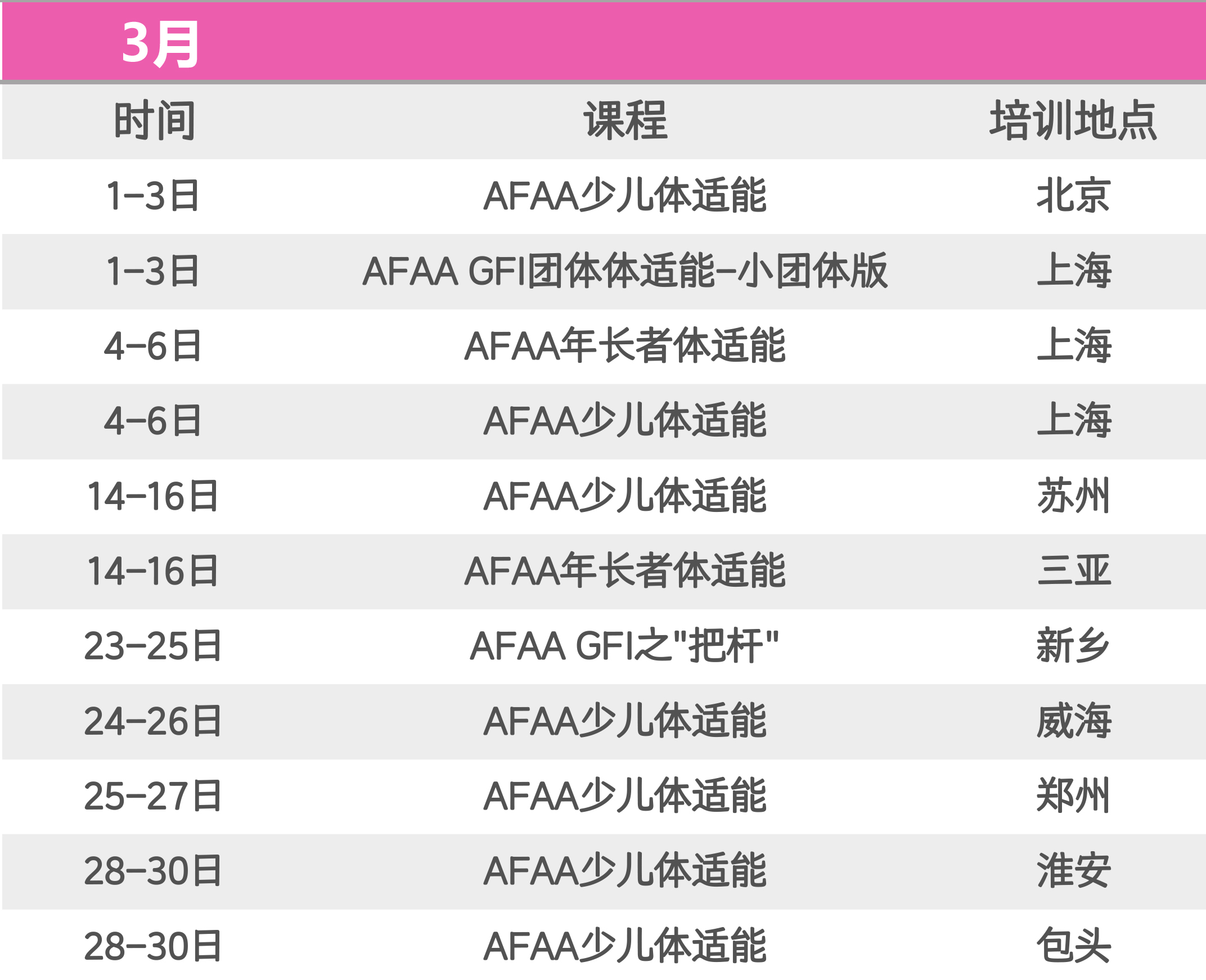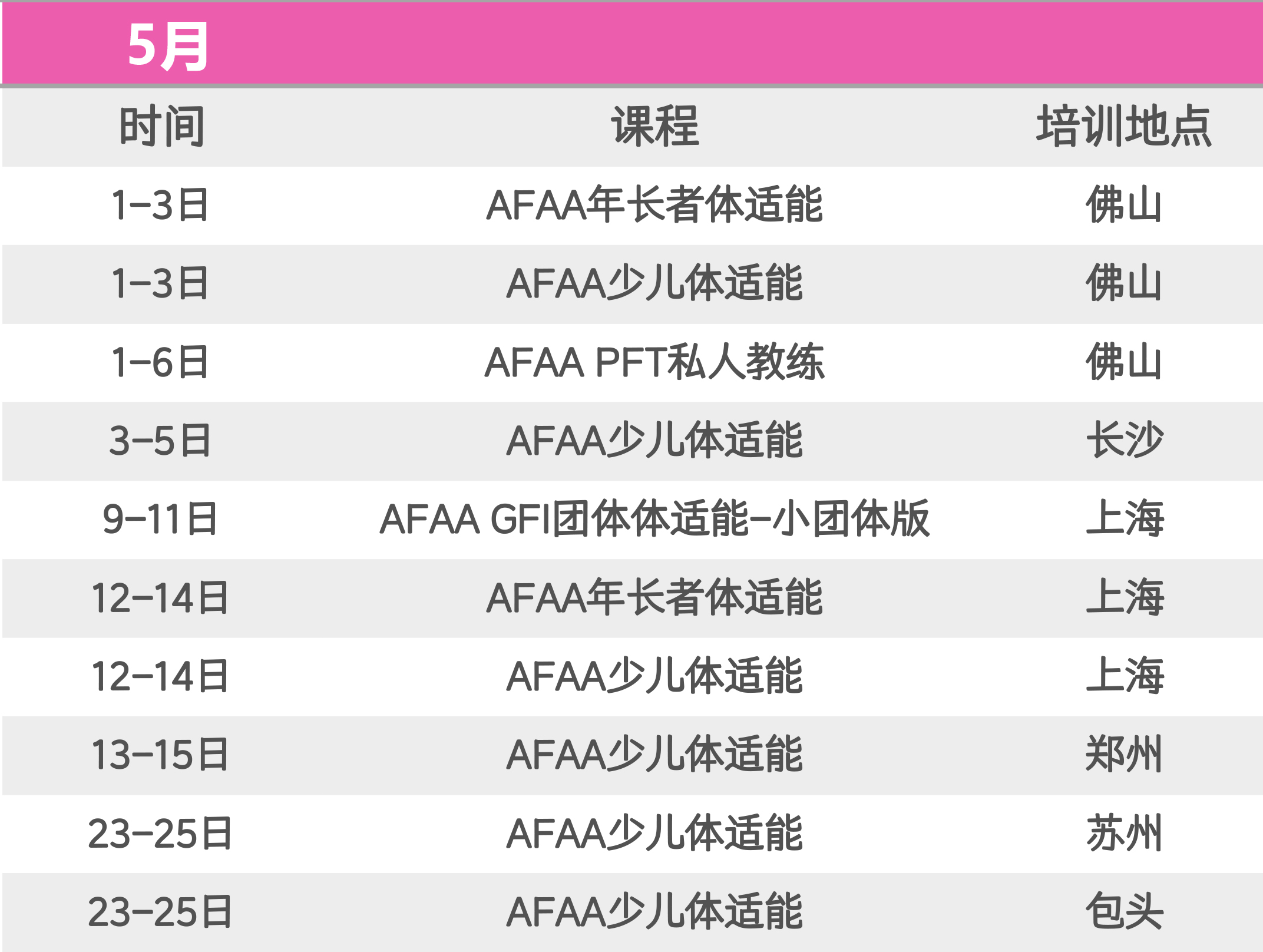 AFAA恒盛娱乐2025年课程安排(3月14更新)