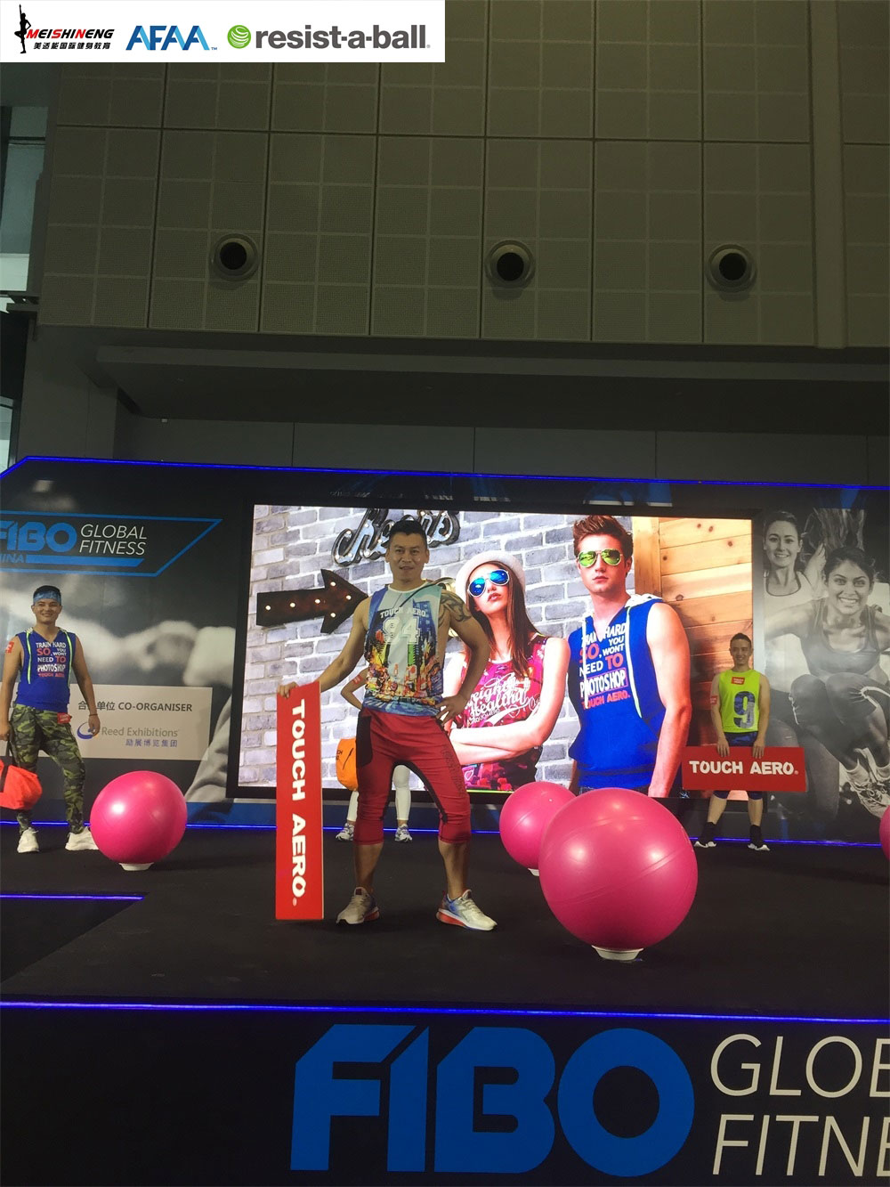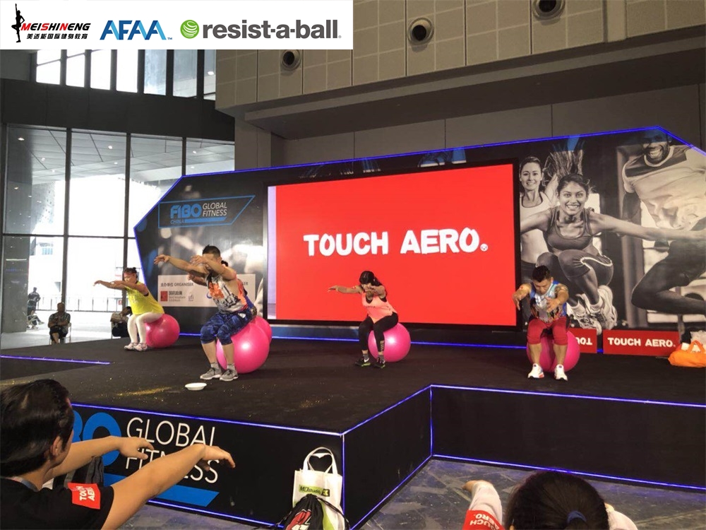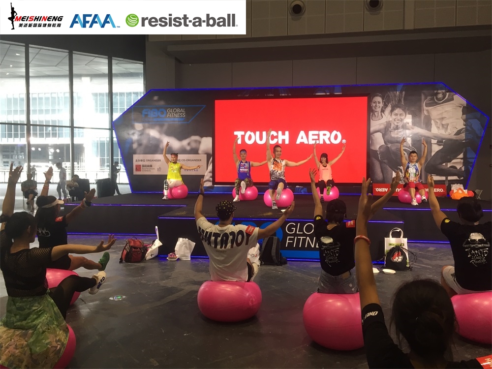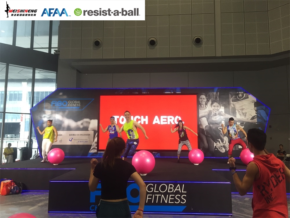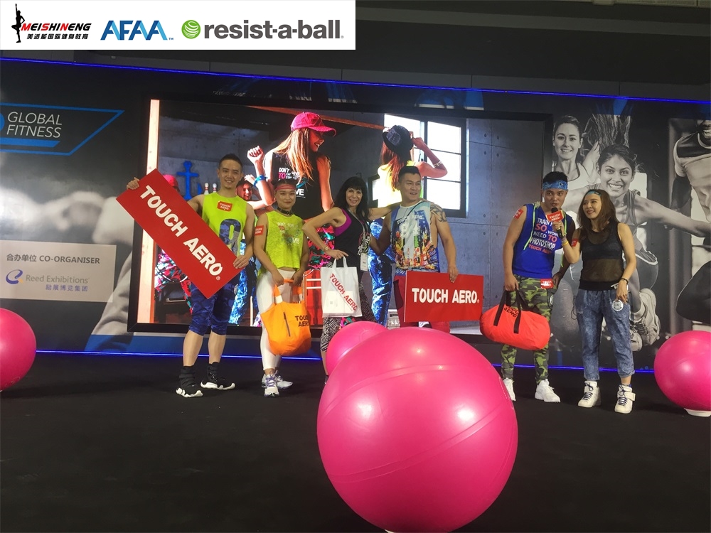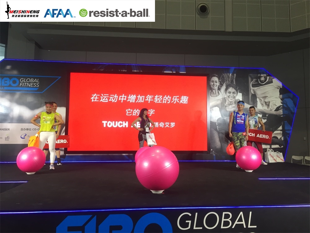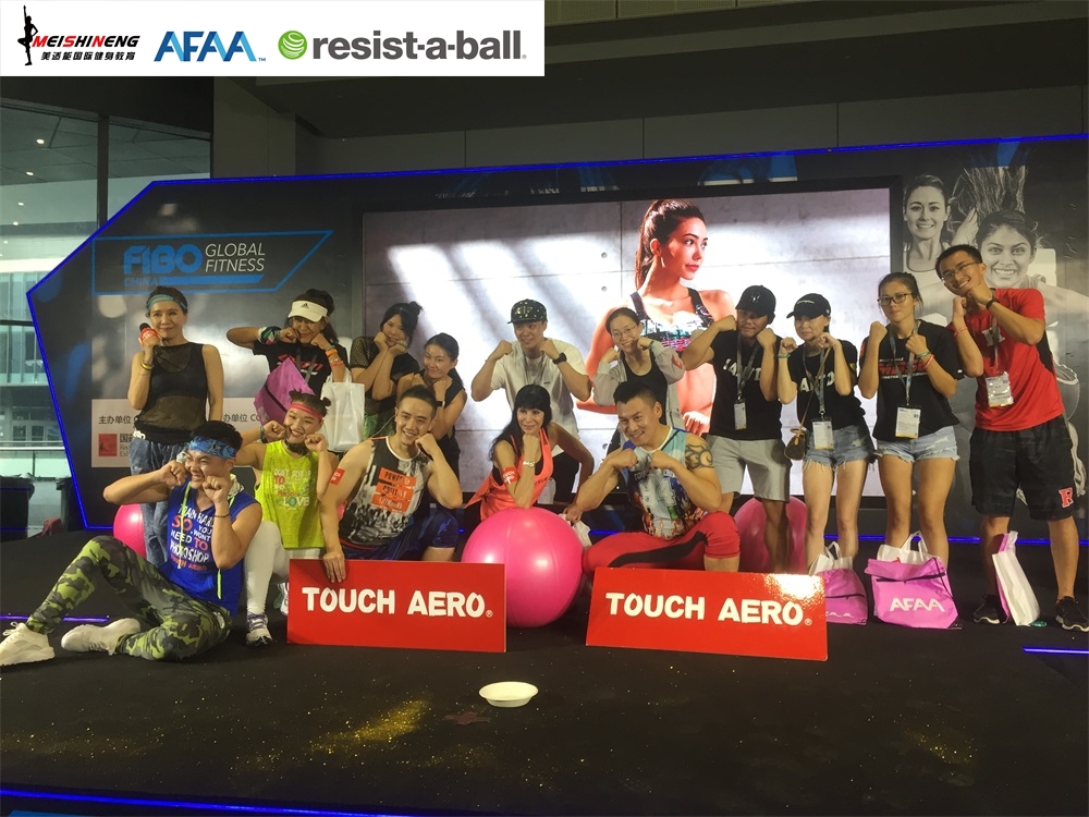 活动一、AFAA恒盛娱乐与RAB双导师团队携手TOUCH AERO台湾著名国际健身服装品牌亮相FIBO舞台show。