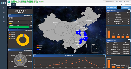 上海,2017年10月6日 - 晶科电力宣布,由运维管理部自主研发的晶科电力运维服务管理平台V2.0版本正式上线运营。升级后的平台,有效地融合了光伏行业特点和O2O理念,更好地实现了线上管控治理,线下维护检修,大限度地降低了运维成本,也减少了发电损失。这标志着公司电站运维业务逐渐走向数据化、平台化、智能化,不断提升协作效率和服务质量,为早日实现“一站式清洁能源服务提供商”的使命又迈出了重要一步。