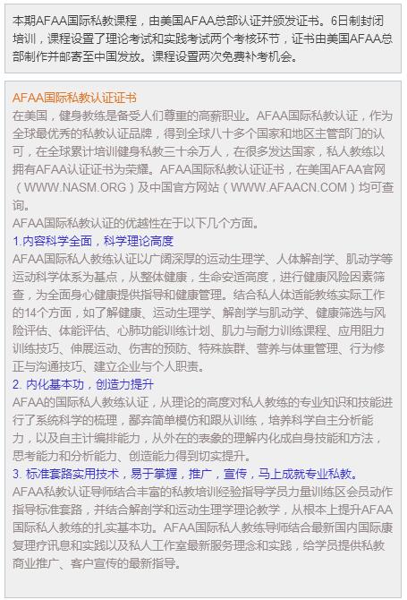 上一篇:AFAA国际私教认证课程-上海站 下一篇:恒盛娱乐国际健身学院2017年第三季... 返回目录
