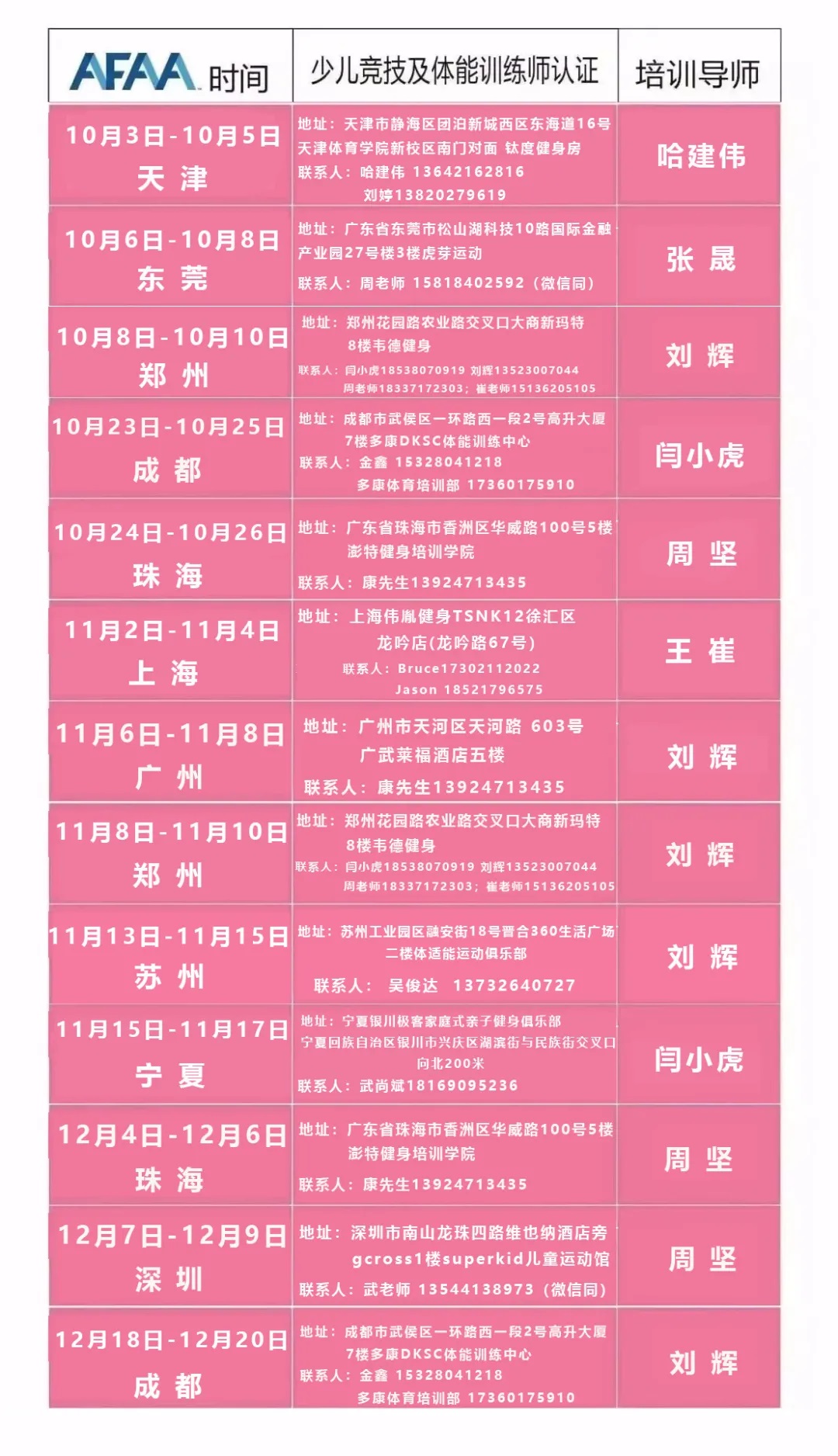 AFAA恒盛娱乐第四季度课程总表:10-12月(更新于9月25日)