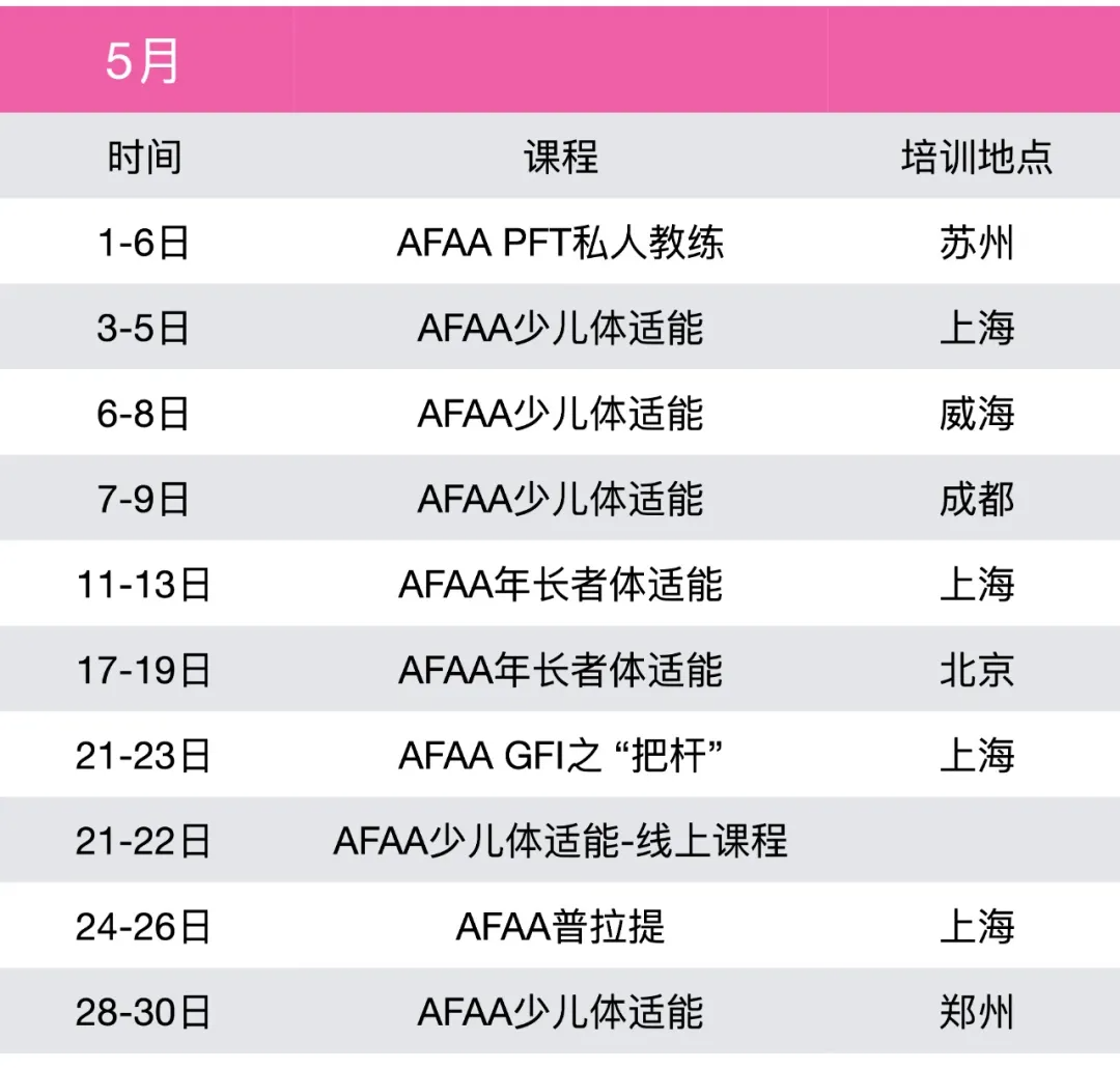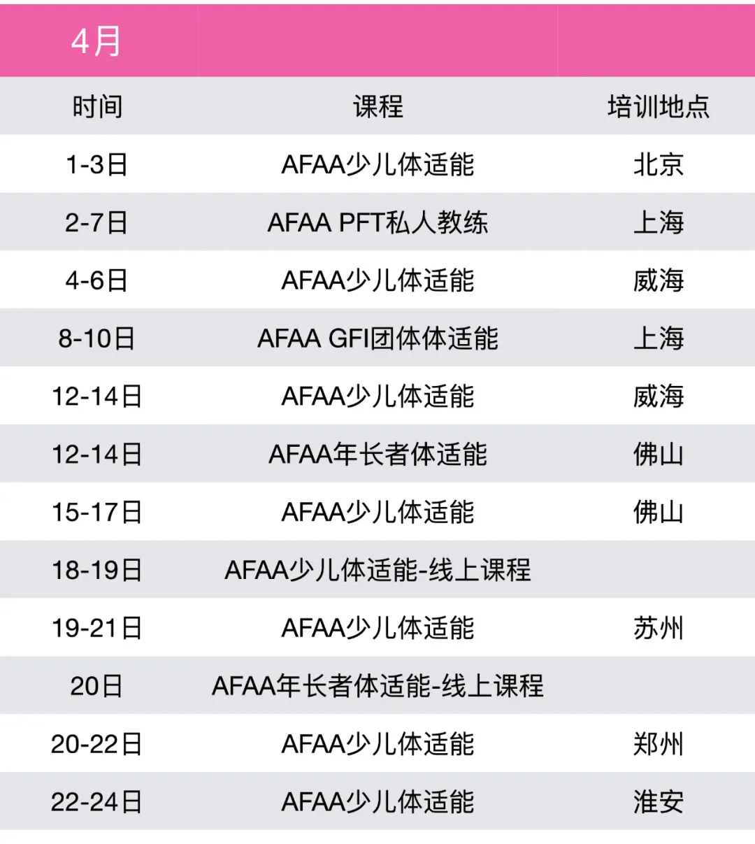 AFAA恒盛娱乐2024年4-6月课程安排——更新中