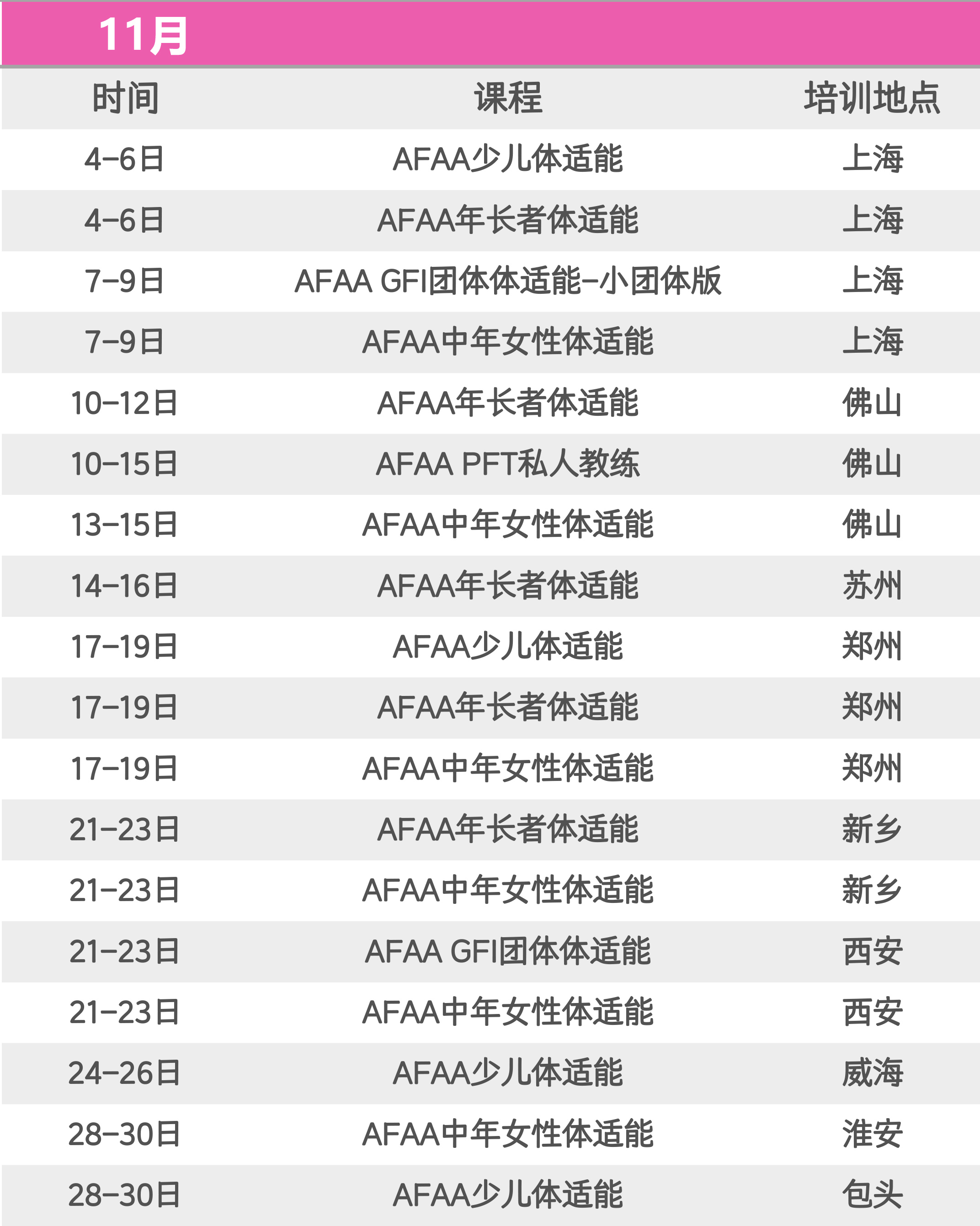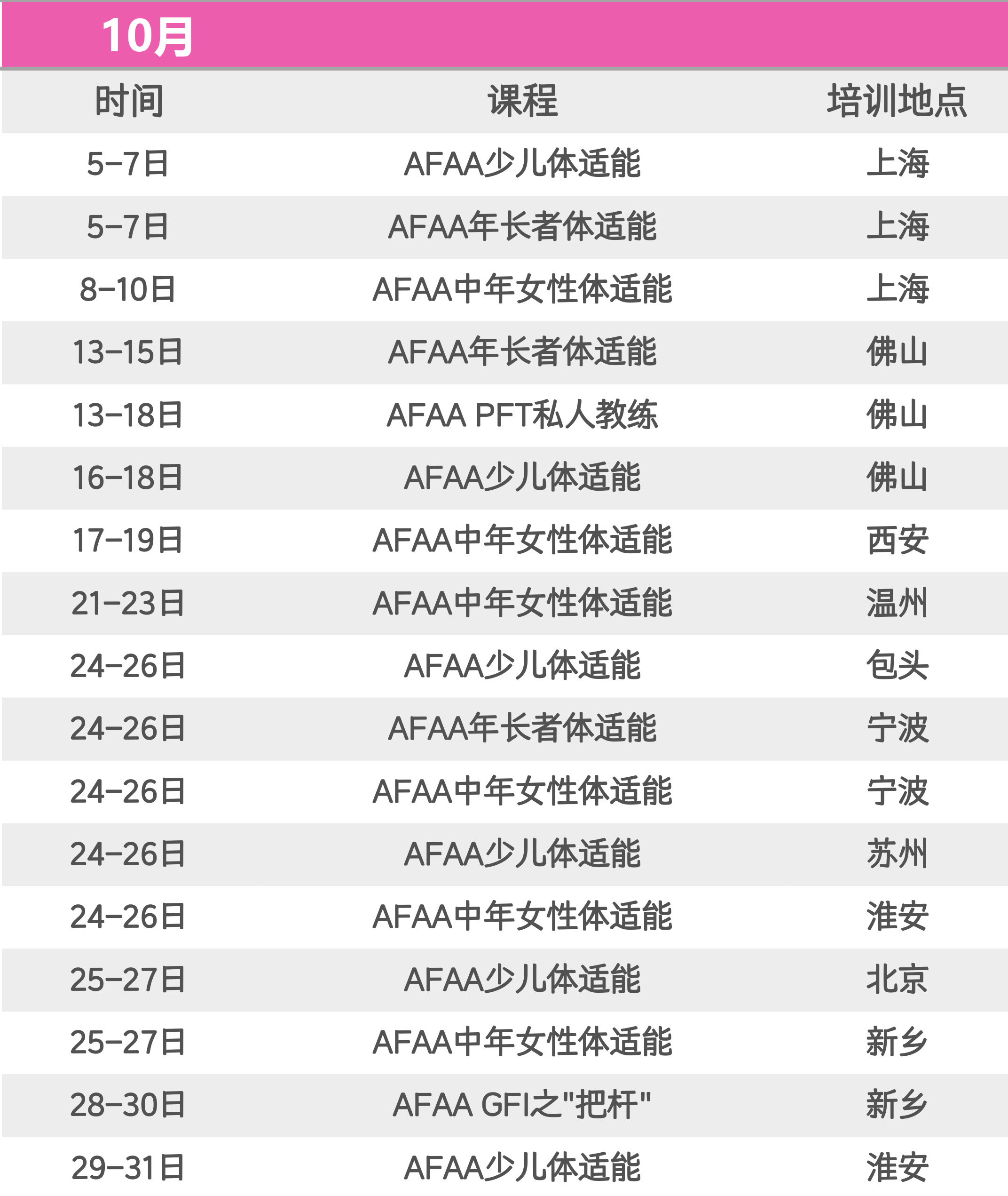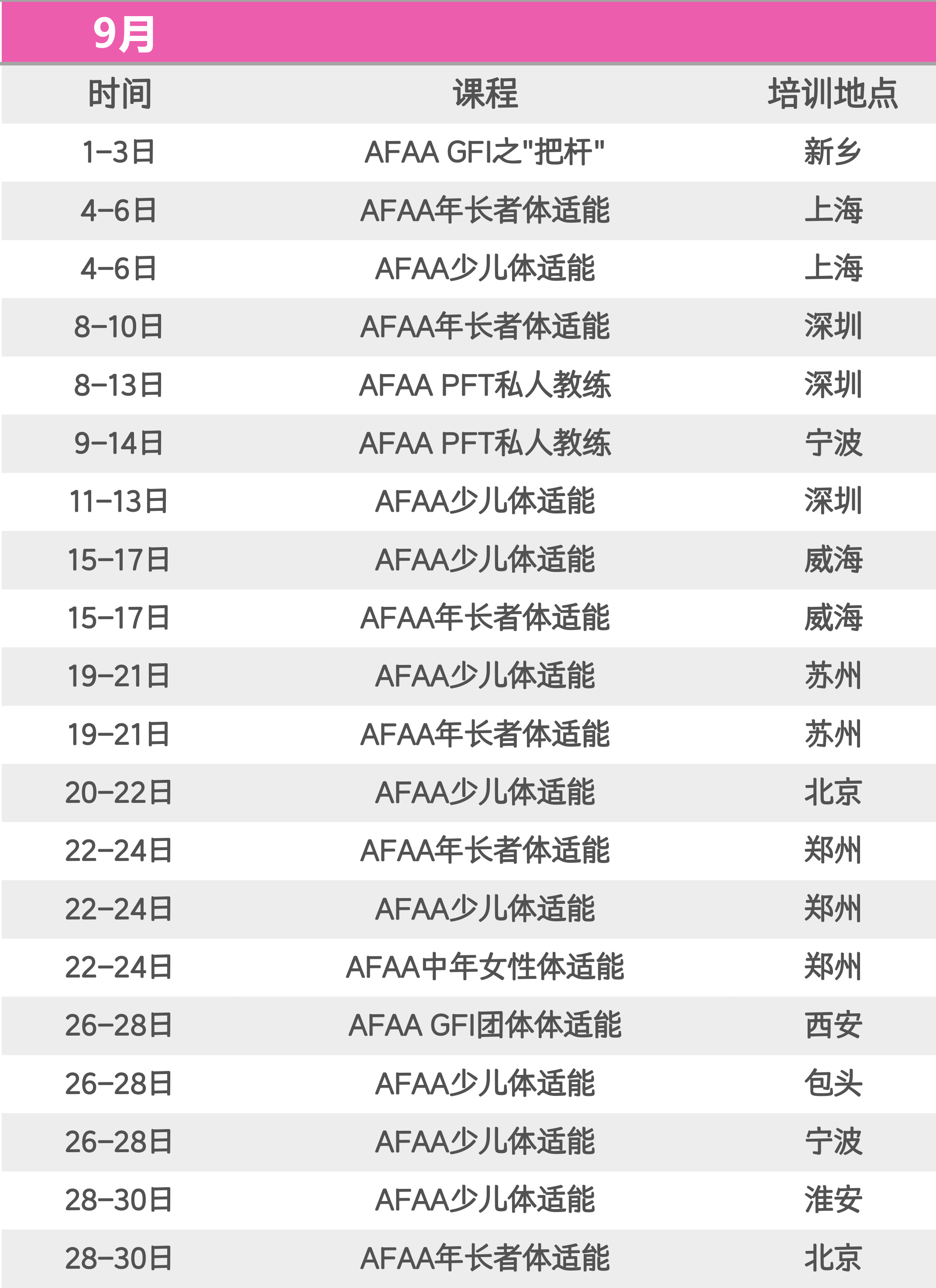 AFAA恒盛娱乐2025年9-11月课程(9/18更新)