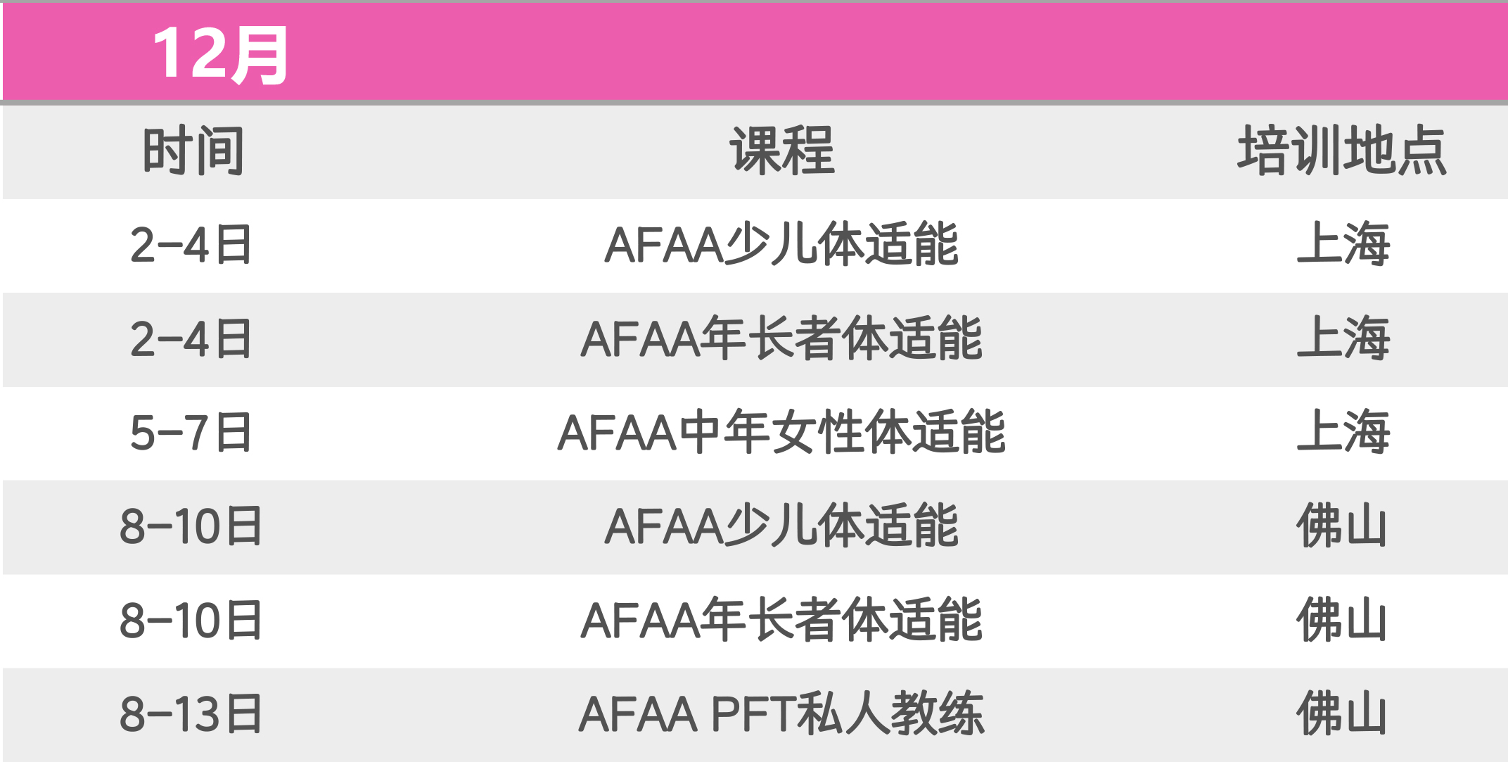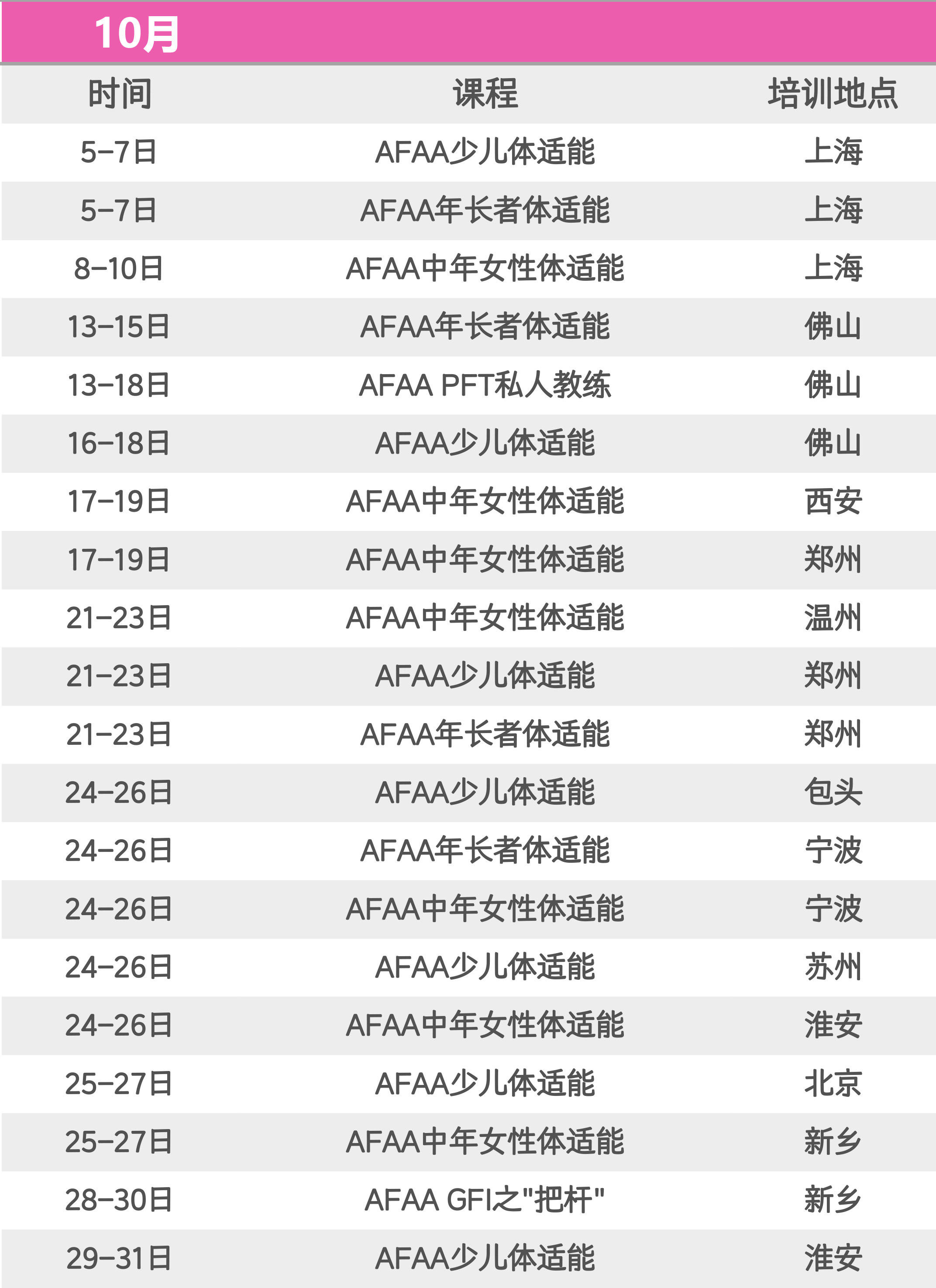 AFAA恒盛娱乐2025年10-12月课程表(9/30更新)
