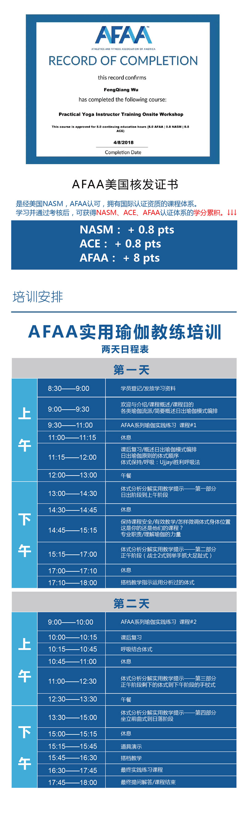 作为全球体适能认证界的领军品牌,AFAA 创立并实践《安全体适能之基础运动 标准和指导纲要》