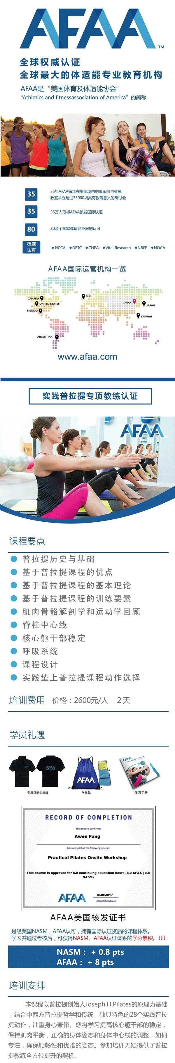 AFAA是“美国体育及体适能协会”( "Athletics and Fitness Association of America")的简称。简称。30多年来 AFAA 每年在美国境内的俱乐部与有氧教室举办超过35000场具教育意义的研讨会,并发展成为"世界最大体适能教育机构"及网络远程体适能(TeleFitness®)教育机 构。截至目前为止,在全球已有超过35万人取得 AFAA 核发之国际认证,并活跃于全世界80余个 国家体适能业界。AFAA 致力于为热爱体适能和体育事业的专业人士提供认证教育。AFAA 坚信改 变形体,可以让生活变得更美好。其专业队伍涵盖私教和团体体适能两个领域。AFAA 教练不仅 知道如何锻炼,还掌握实践技巧,科学理论和动手能力,以期有效激励和激发大家进行更加健 康快乐生活。